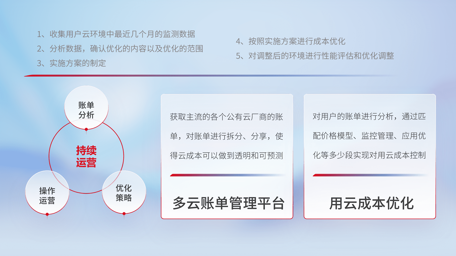 监控业务系统资源开销,,,,对资源的消耗精确计量,,,,实现费用的透明化管理,,,,不断提升资源使用率,,,调整资源购买方式,,降低资源费用成本,,,用云成本可预测、、、、用云费用可优化,,,,云资源配额有据可依。。。
